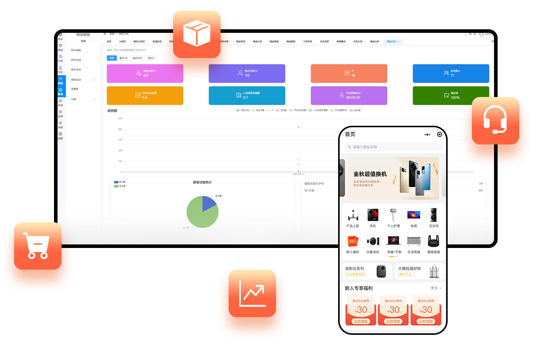 500+模板,30+營銷組件,分銷,拼團,砍價,秒殺,積分商城,優(yōu)惠券一個都不能少